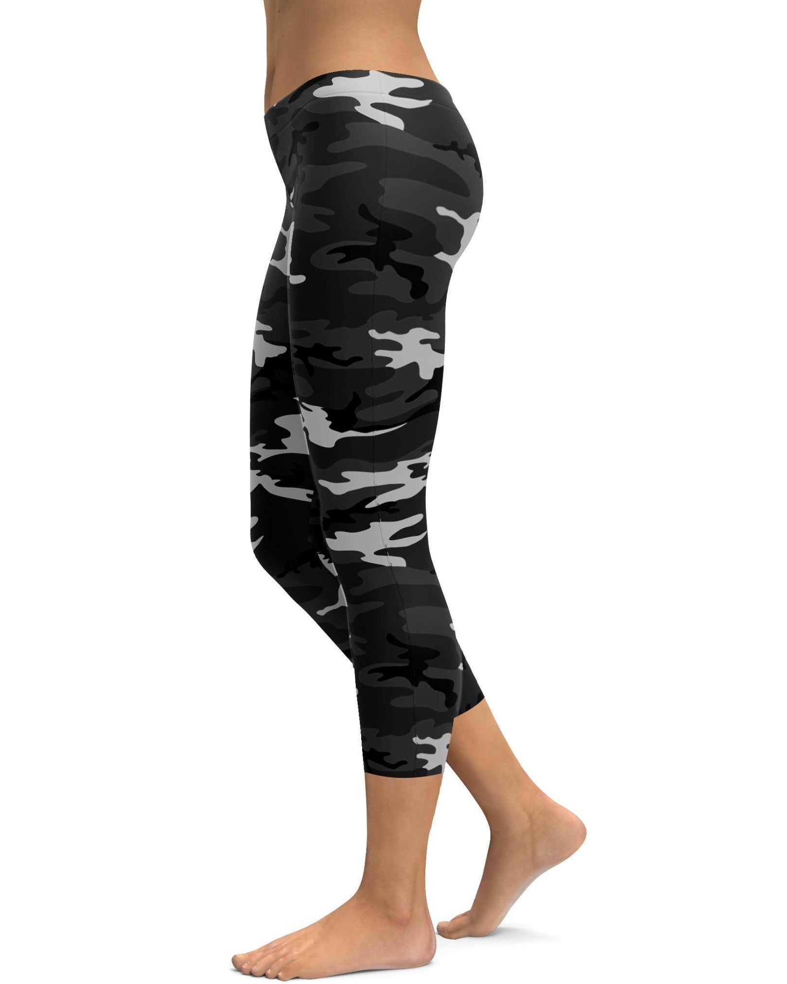 Black, white and grey Classic Camouflage print Capri Leggings for women