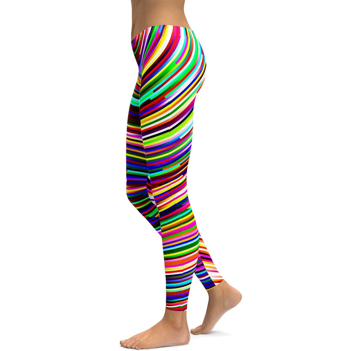 Women's psychedelic striped leggings front view