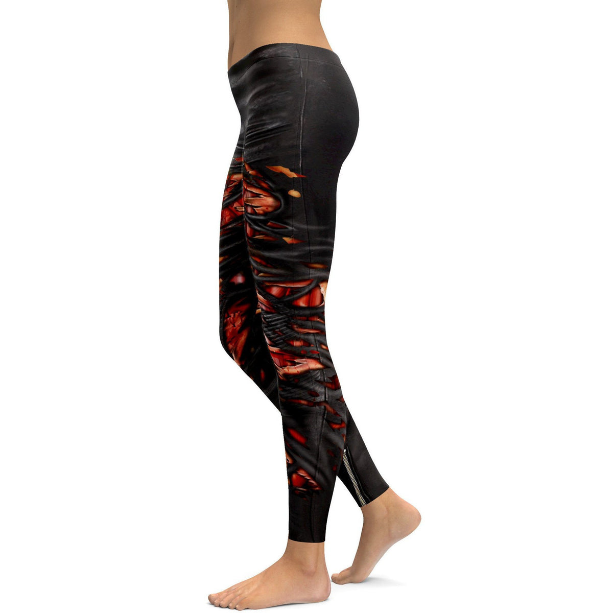 Women's flesh and torn leather printed leggings front view