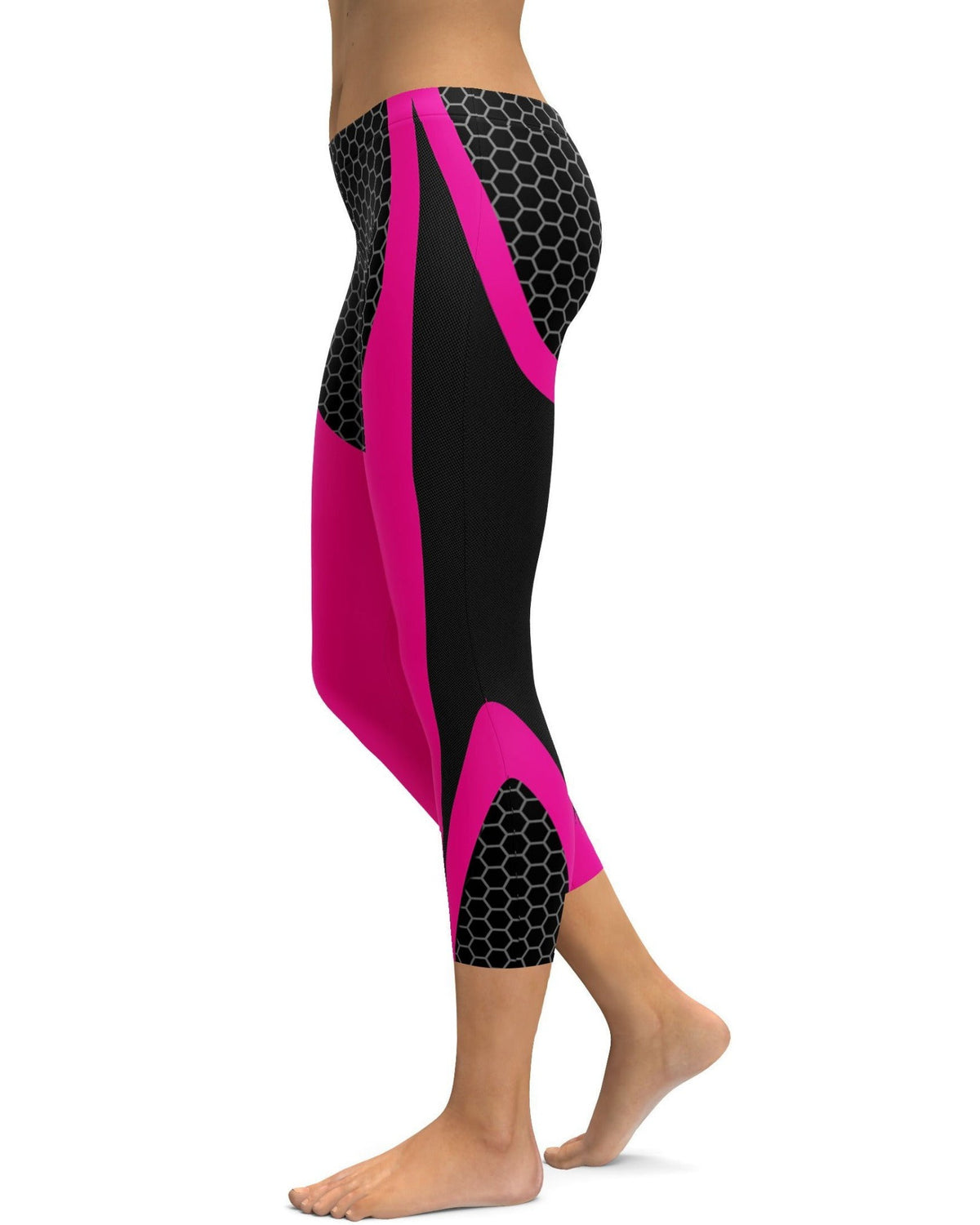 Women's pink honeycomb carbon black capris front view
