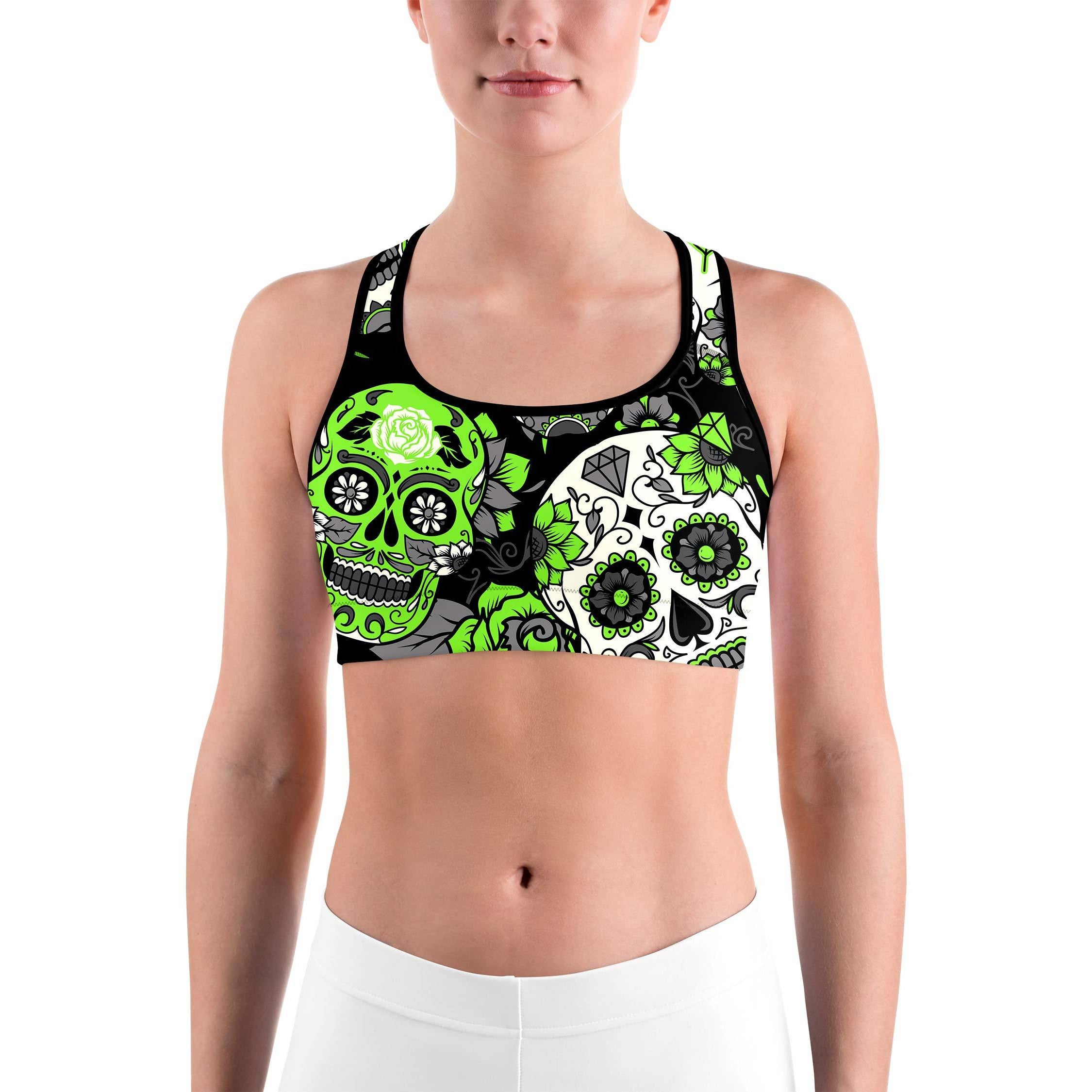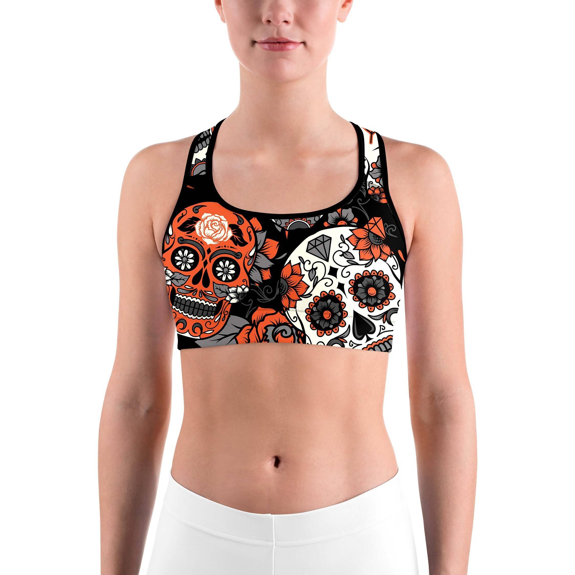 Black & White Sugar Skull Sports bra - GearBunch Leggings / Yoga Pants
