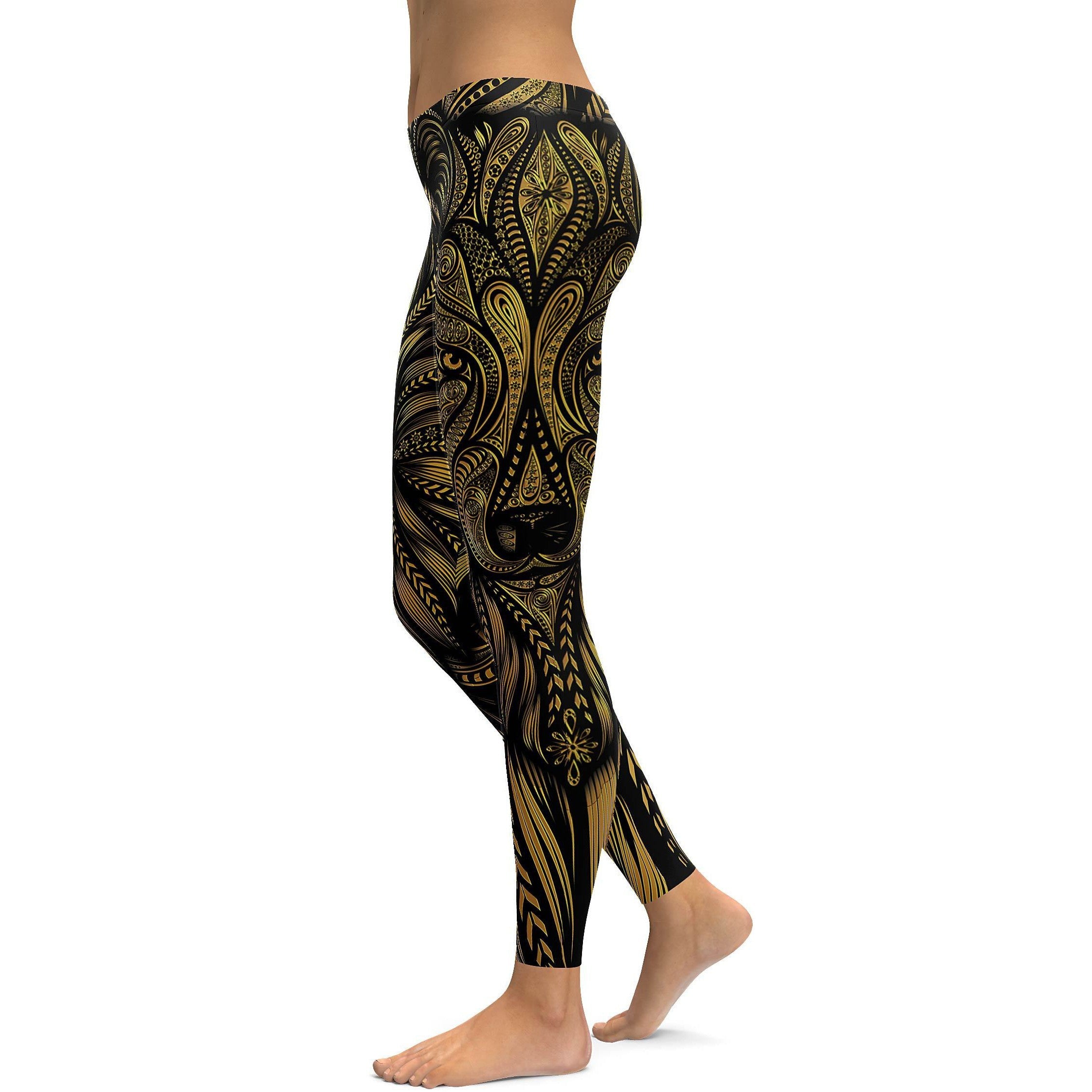 Golden Ornamental Elephant Leggings - GearBunch Leggings / Yoga Pants