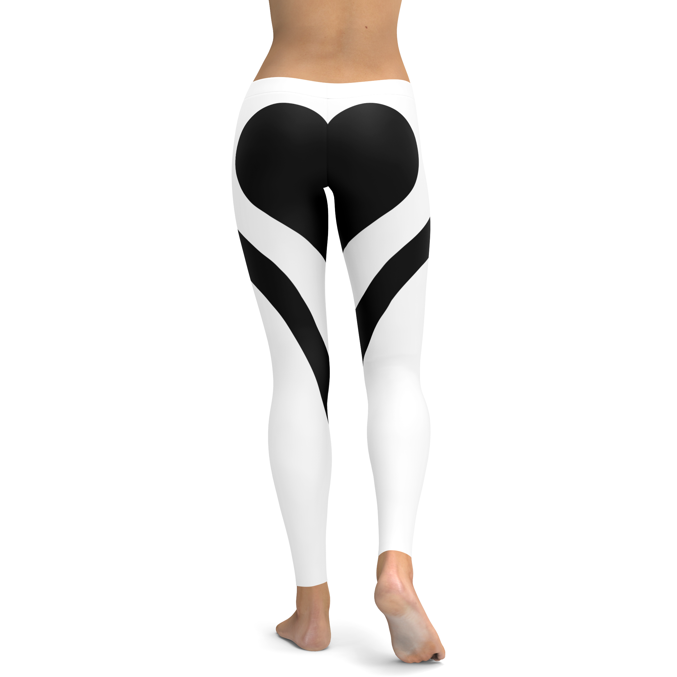 White Mini Hearts Black Leggings - GearBunch Leggings / Yoga Pants