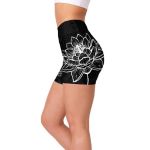 Womens Yoga Shorts Colorful Roses Black/White/Pink | Gearbunch.com