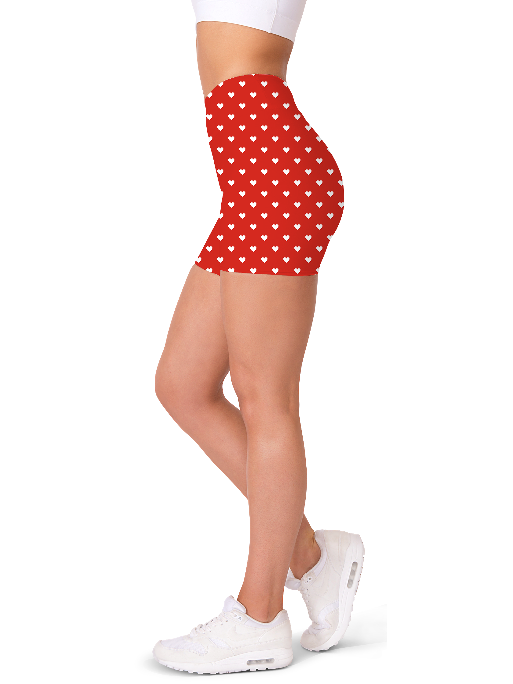 White Mini Hearts Red Yoga Shorts
