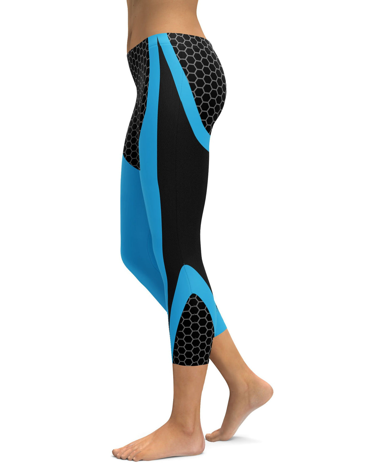 Women's blue honeycomb carbon capris front view