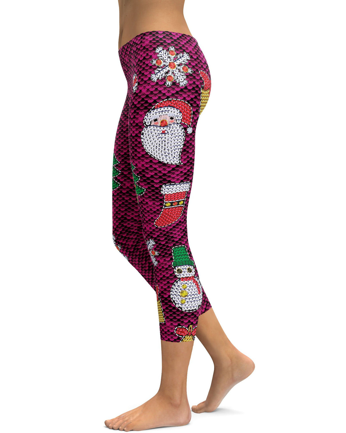 Women's Christmas Paillette capris front view