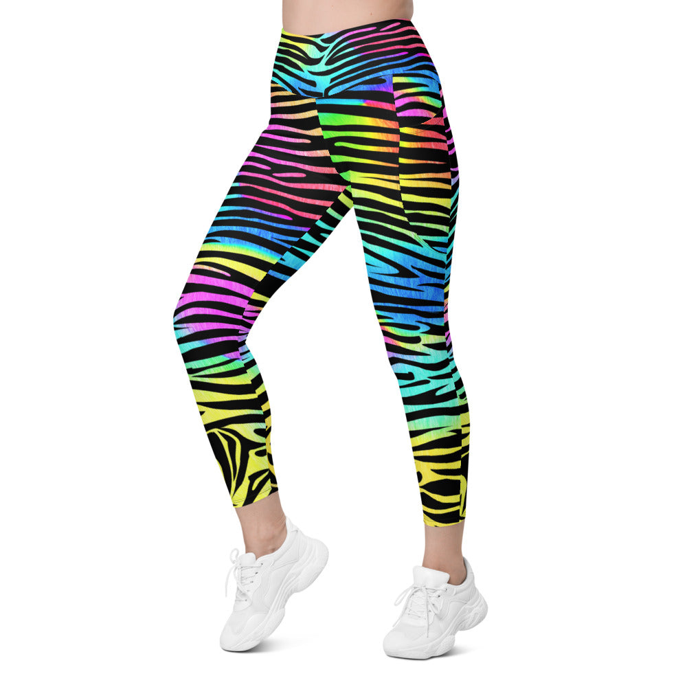 Colorful Zebra Striped Leggings with Pockets | GearBunch