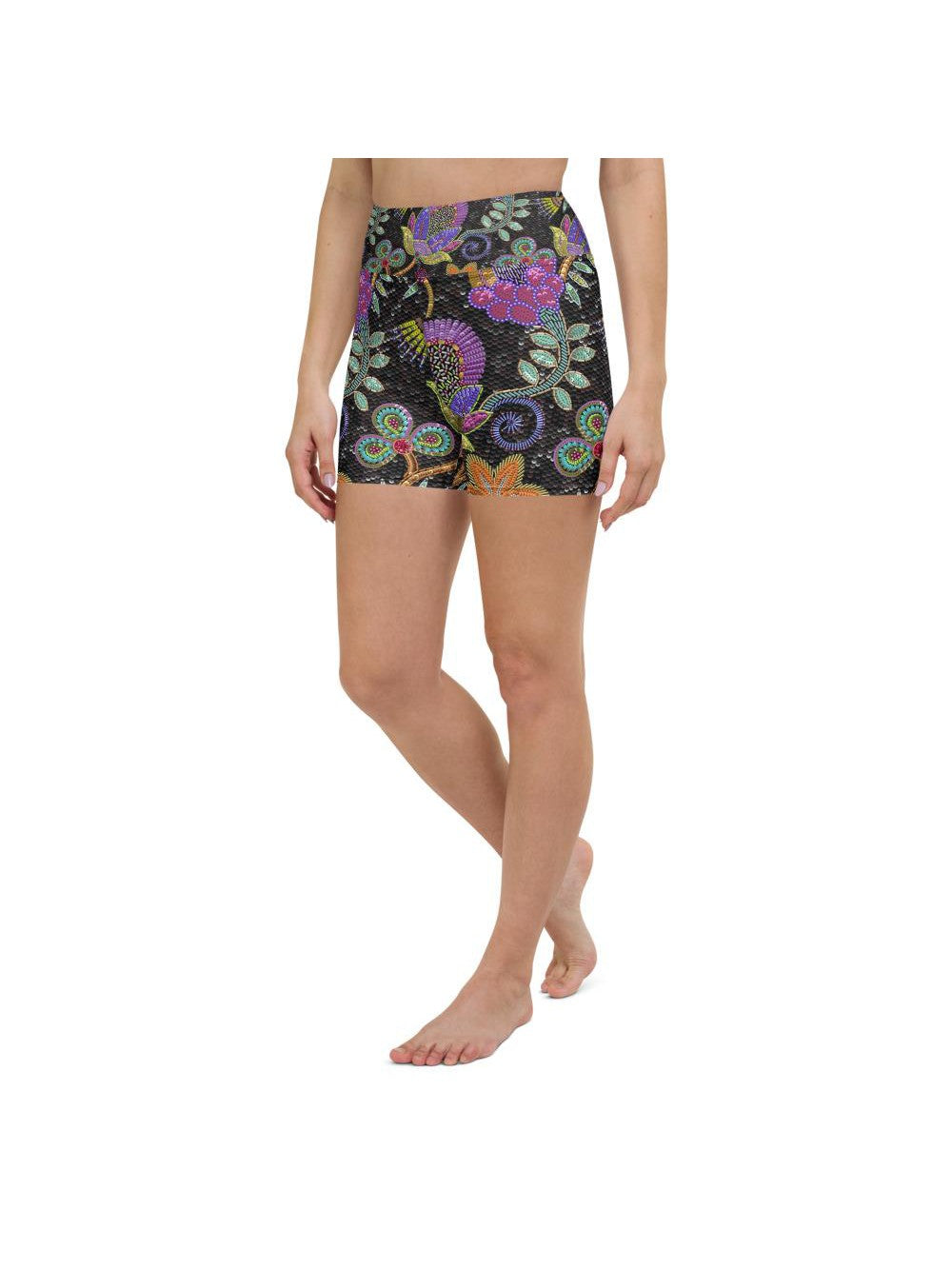 Faux Paillette Flower Yoga Shorts | GearBunch