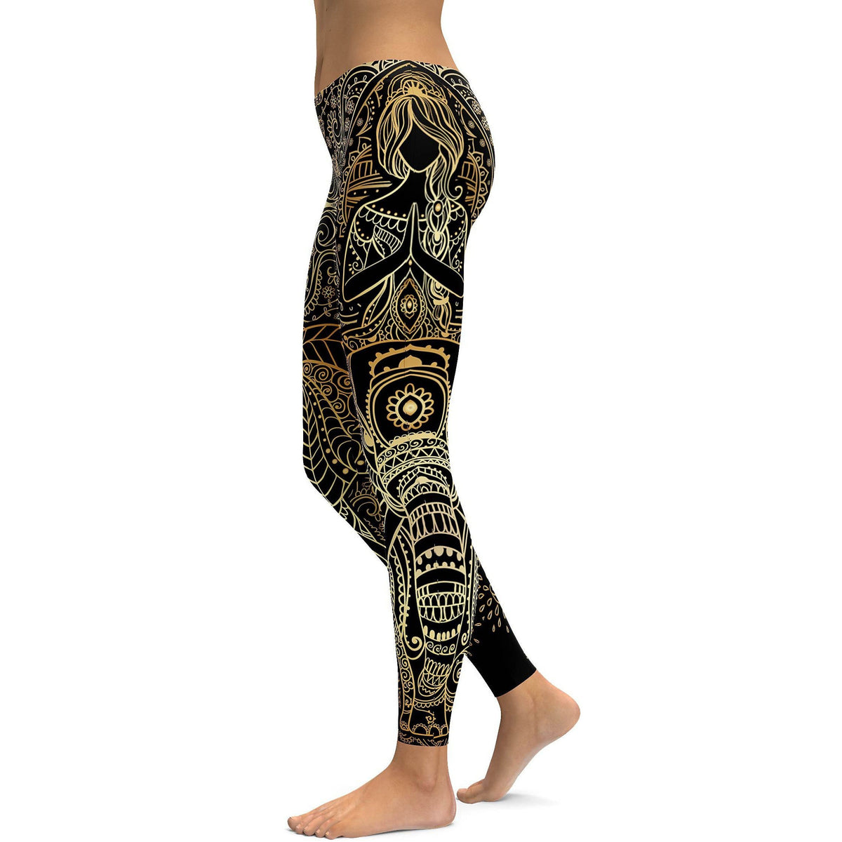 Women's golden ornamental elephant printed leggings front view