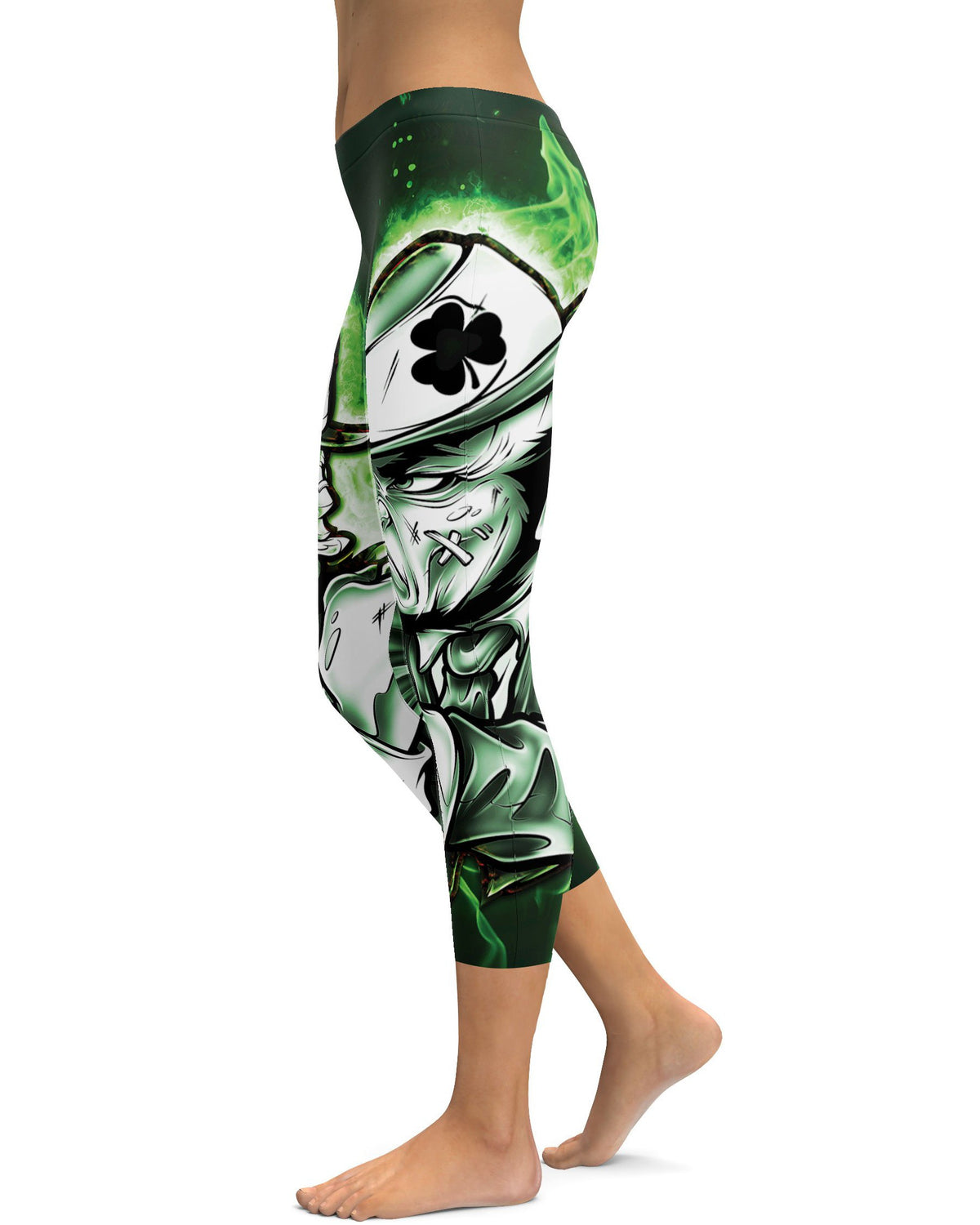 Women's leprechaun print capris front view