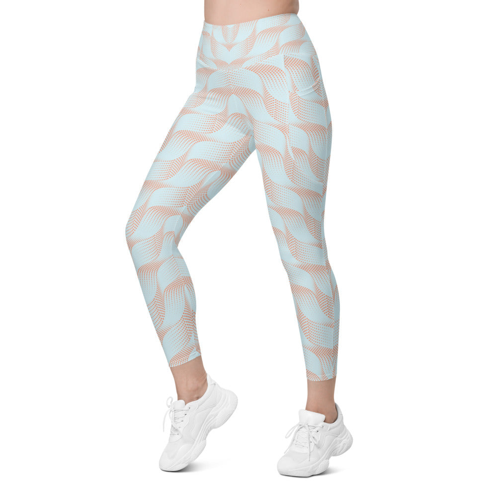 Light Blue & Apricot Wave Leggings with Pockets