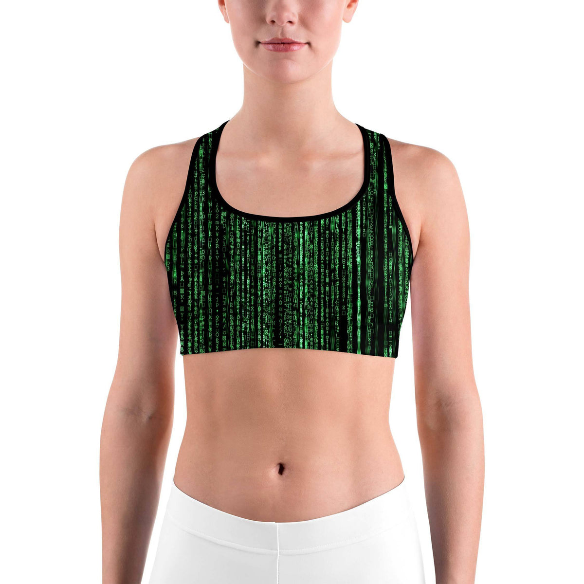 Women's matrix inspired sports bra front view