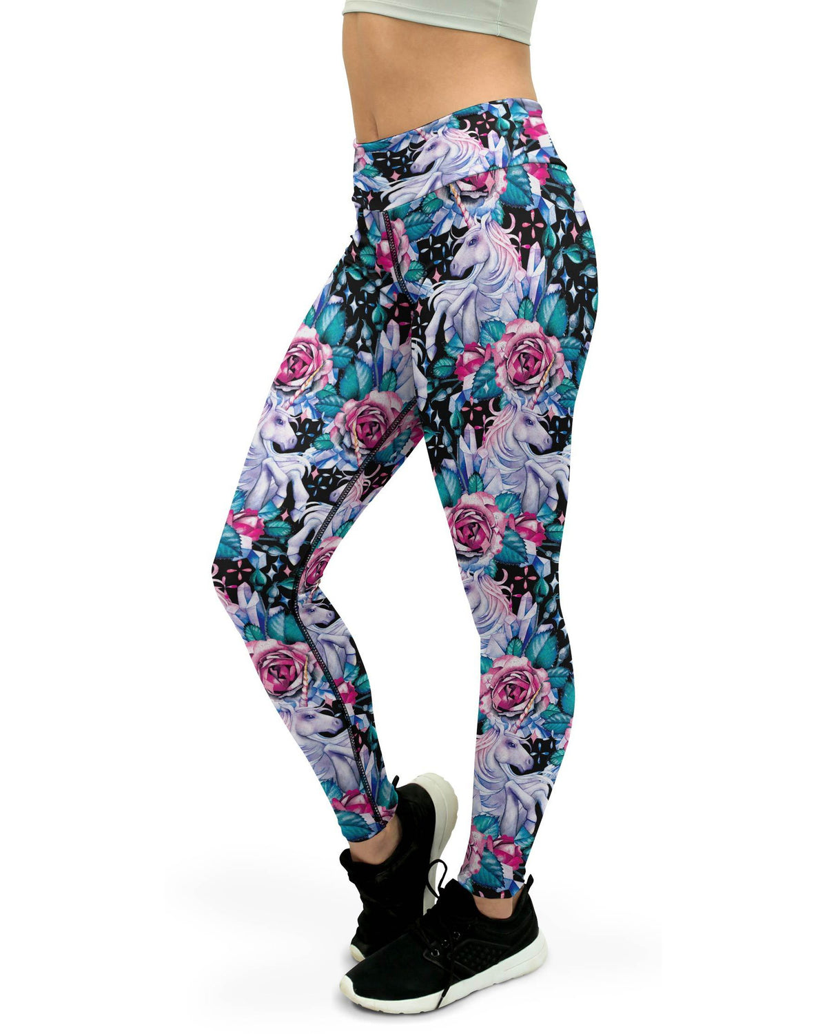 Women's mystic unicorn printed yoga pants front view