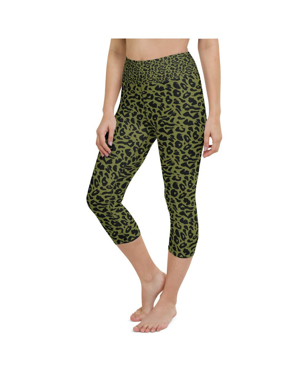 Olive Green Leopard Skin Yoga Capris | GearBunch
