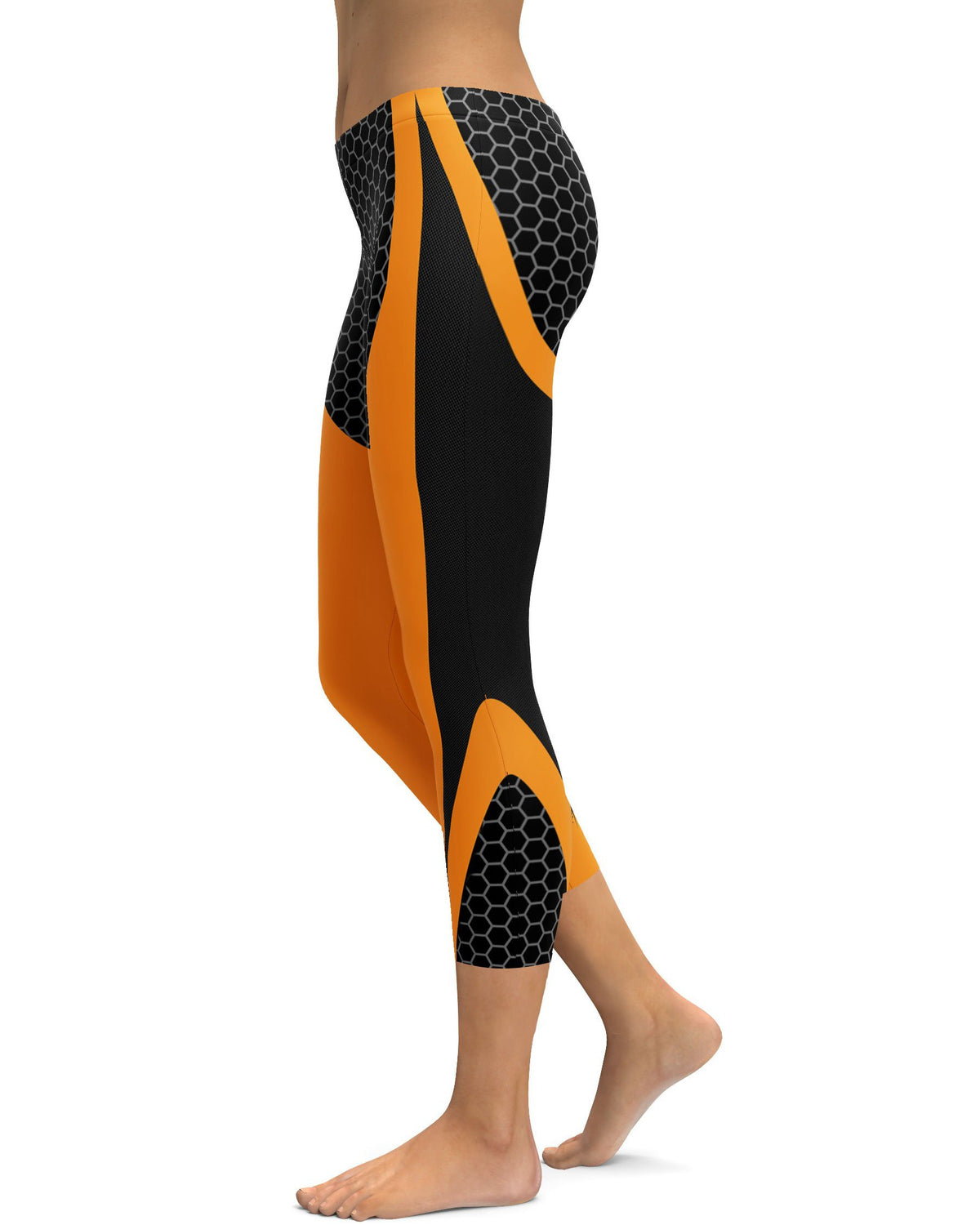 Women's orange honeycomb carbon capris front view