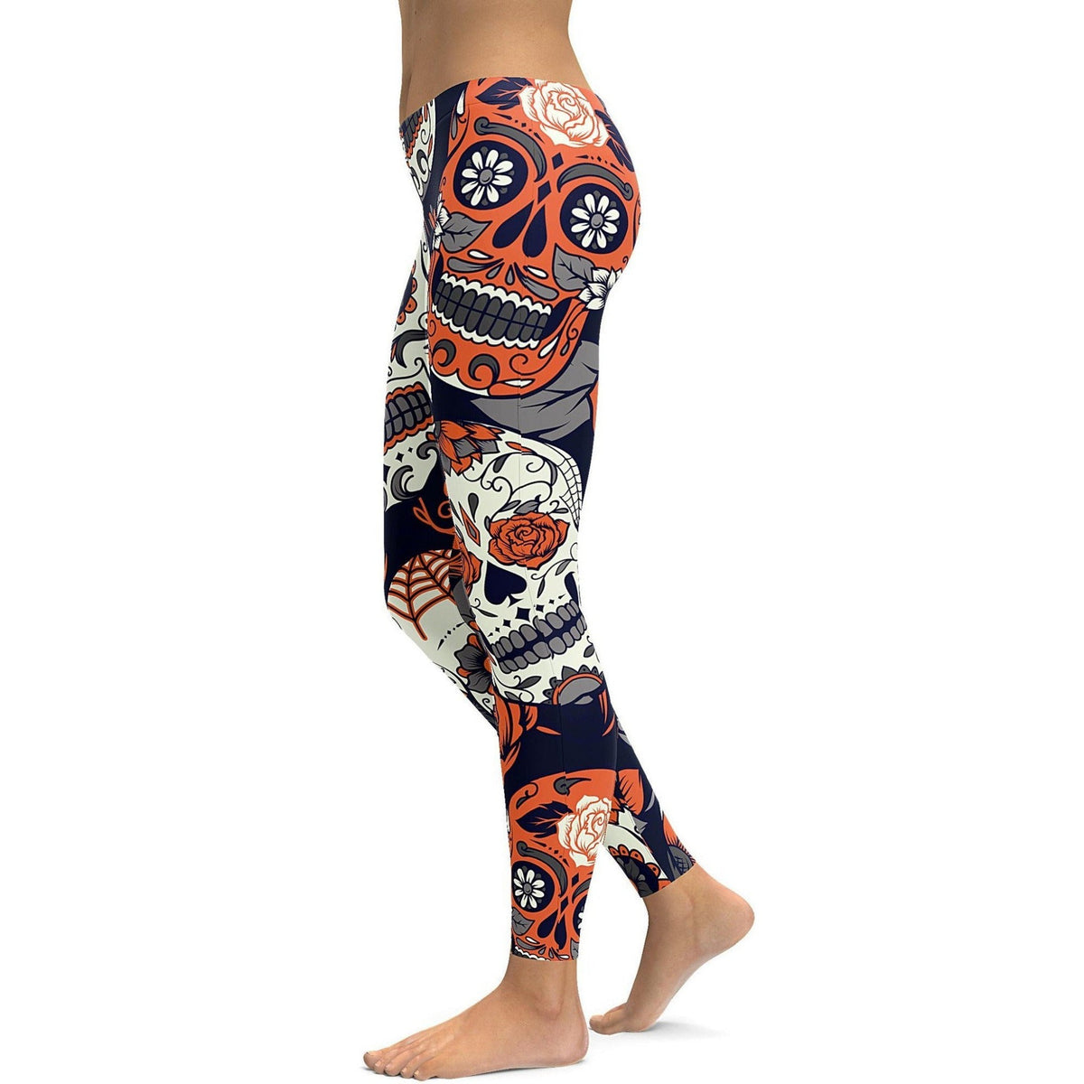 Orange Sugar Skull Leggings