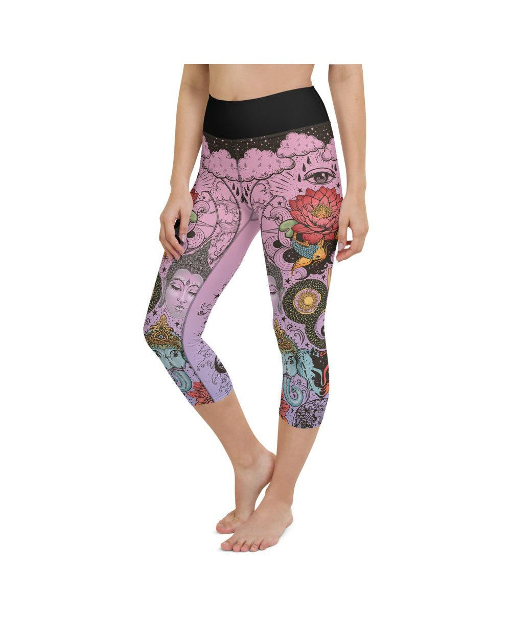 The Gearbunch Pink Tattooed Lotus Yoga Capris are packed with peaceful artworks.