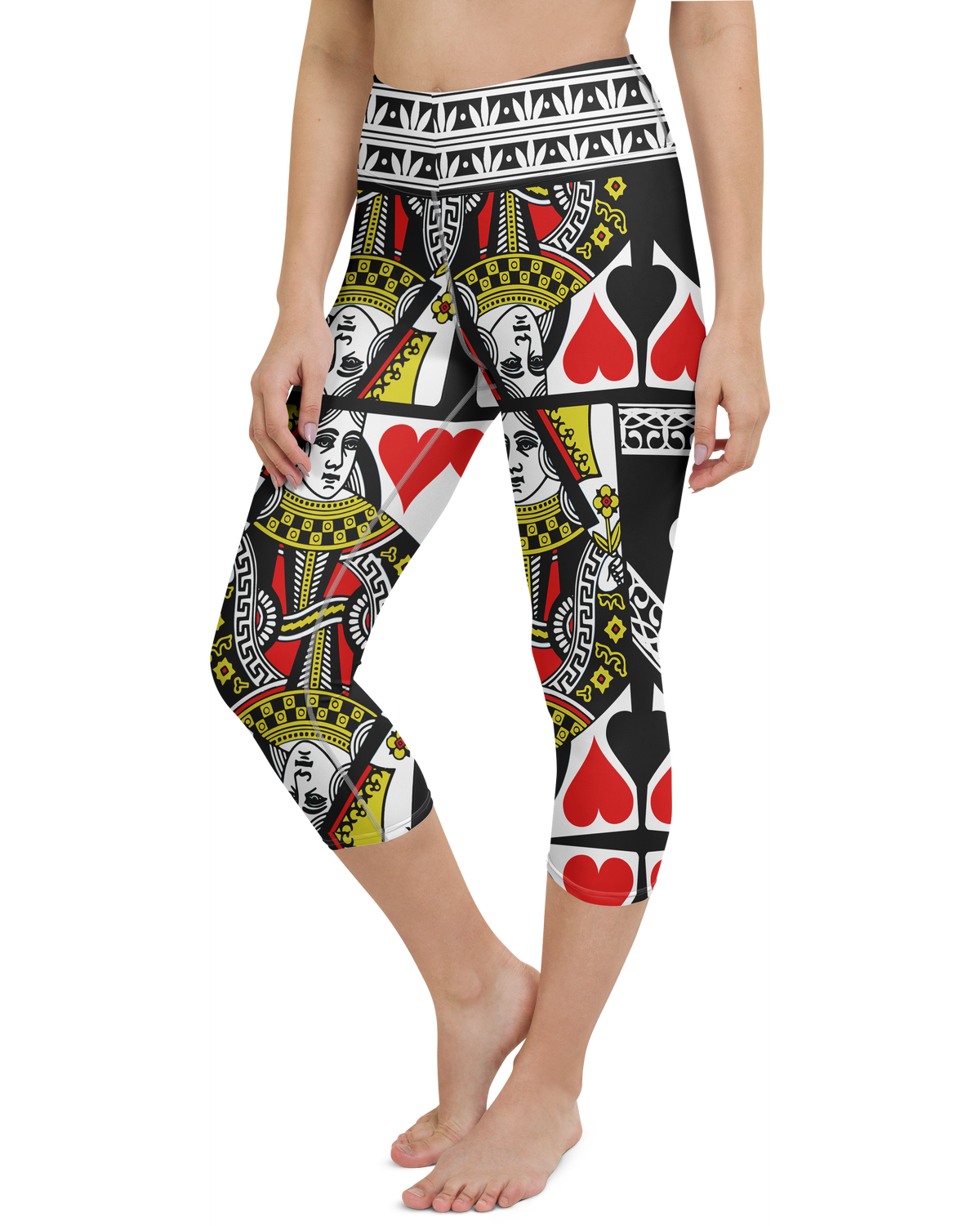 Women's Queen of Hearts printed capris front view