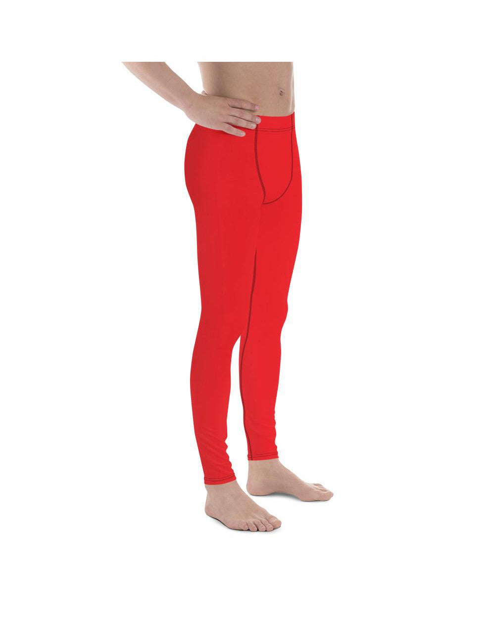 Men's solid hot red meggings front view