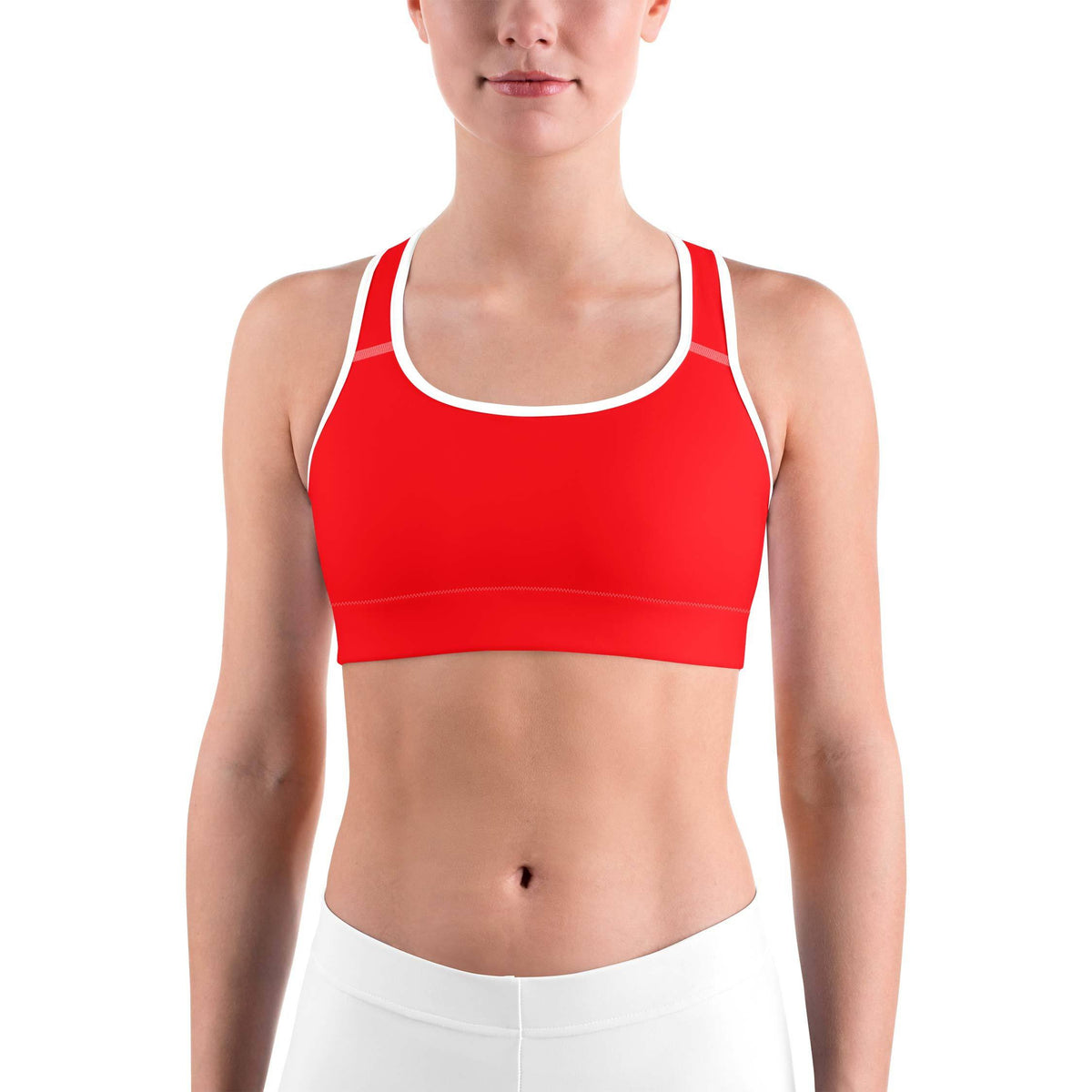 Women's hot red sports bra front view
