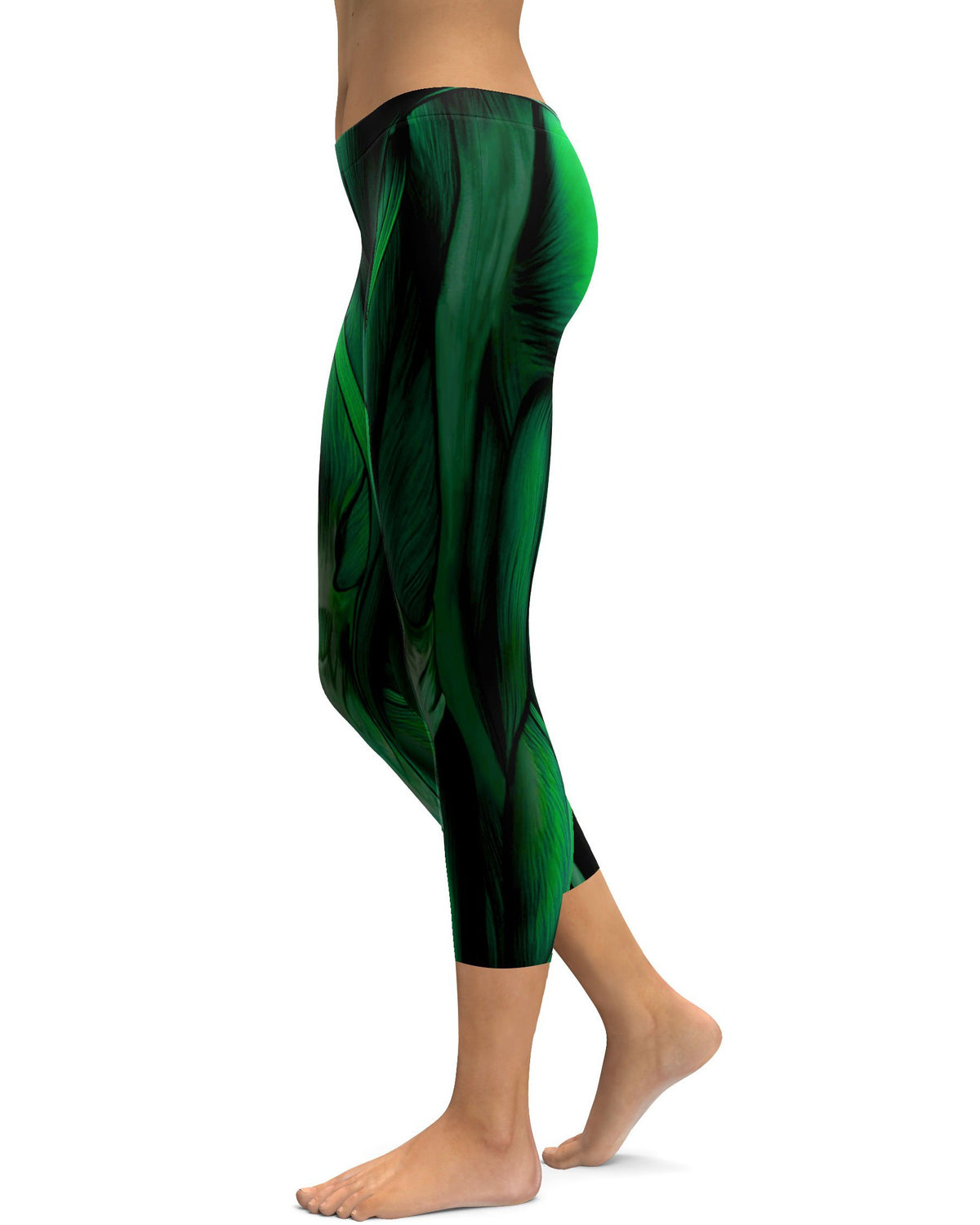 Women's green muscles printed capris front view