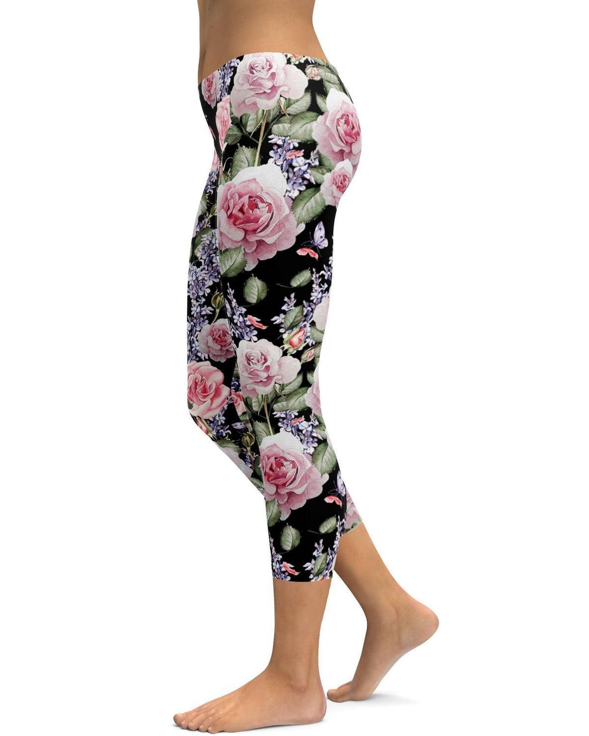 Women's watercolor roses & lavender capris front view